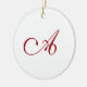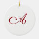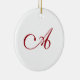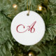 Berry Red Elegant Script Monogram Christmas Ceramic Ornament