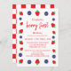 Berry sweet 1st birthday invitation with strawberries and blueberries with a chequerboard picnic style background.
