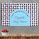 A berry sweet baby is on the way! Blueberry and strawberry fruit with a blue and white chequerboard pattern and trendy arch