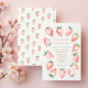 Central to the design is the motif of strawberries, a quintessential symbol of summertime abundance and sweetness. The playful depiction of ripe berries adds a touch of whimsy and childlike wonder to the invitation, inviting guests to join in the celebration of new beginnings.