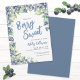 A cute 'Berry Sweet' baby shower theme featuring watercolor blueberries with green leaves. Perfect for a boy baby shower, but also works for a girl! A bold handwriting script typography mixed with a simple font. Blue and navy blue fonts, but you can change them out to whatever you'd like. You can also change the background colour on the backside. Berry Sweet Blueberry Baby Shower Invitation.