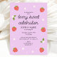 Strawberry-themed "berry sweet celebration" birthday party invitations. Any age can be used! Easily customise the wording with your party details to make the invitation your own!