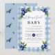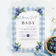 Berry Sweet Gingham Blue Farm Chic Baby Shower Invitation