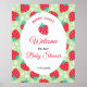 Berry Sweet Green Strawberry Baby Shower Welcome Poster