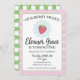This sweet and simple and adorable 1st birthday invitation features a watercolor strawberry and plaid and pinstripe accents.