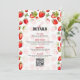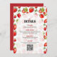 This cute baby shower Party details design features an adorable red strawberry frame on a white with customisable black typography.