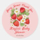 Berry sweet strawberry baby shower thank you favour stickers template, summer garden strawberry berry themed baby shower favour stickers strawberries and daisies garden theme