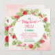 Berry sweet strawberry birthday party invitation template, watercolor strawberry wreath, light pink background.