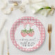 Berry Sweet Strawberry Pink Gingham Baby Shower Paper Plate