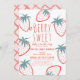 This cute "berry sweet" girl's virtual/zoom/online baby shower invitation features a white background with strawberries in red and green. The reverse side features a light pink background with hand-painted check patterns in red. Personalise for your needs. You can find more matching products at my store.