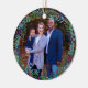 A Christmas ornament celebrating the first Christmas in your new home. Add a photo of your family to the ceramic ornament inside a hand-drawn wreath of leaves in blue and green full of dark pink berries. Personalise further with the year. All text is customisable in case you want to change the wording.