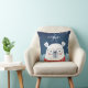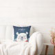 Monogrammed throw pillow perfect for the nursery with a glasses-wearing polar bear, a red scarf around its neck, standing among ice and snow. Add your child's name and initial in white and blue.