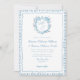 Planning your dream wedding? This whimsical all-in-one wedding invitation makes it easy and beautiful. Featuring a hand painted watercolor blue bespoke monogrammed crest with tiny blush flowers and hand painted frame on a white background, this design combines classic playful charm with modern convenience.