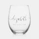 Give the best aunt ever a fun gift with this chic stemless wine glass, showcasing her name monogrammed in a stylish calligraphy script with swashes and "Best Aunt Ever" in elegant typography. Personalise whether she is addressed as Aunt, Auntie, Tia, etc.