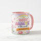 Celebrate your favorite aunt with this adorable "We Love Auntie" photo frame Photo Collage Mugs! This charming mug features a watercolor-style illustration with a delightful banner proclaiming your love, perfect for displaying a cherished photo of you and your special aunt. The playful design includes colorful bunting, sweet hearts, and a vibrant bouquet of flowers, making it a wonderful way to show appreciation. It's an ideal keepsake for birthdays, holidays, or just because, offering a personal touch she'll adore every time she sips her favorite beverage. Make her feel extra special with this unique and heartfelt mug.