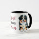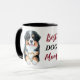 "Best DOG Mum" declares this cute mug at the centre. The image on each side is an adorable image of a Bernese Mountain Dog offering a gold heart. Perfect for Mother's Day or her birthday! All the text is customisable, so you may change it for Dad on Father's Day, too.