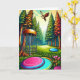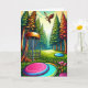 Retro disc golf course with Eagle flying over the pine trees birthday card. Disc golf pun inside says, "Wishing you the best birthday by par."