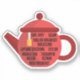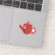Red teapot steeping with some of the best black teas listed on the pot: early grey, assam, English breakfast, Darjeeling, lapsang souchong, Ceylon, masala chai, tieguanyin, nilgiri, keemun, and Irish breakfast. Perfect for National Hot Tea Month in January.