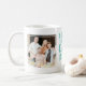 Looking for the perfect gift for your bonus dad? Look no further! This modern coffee mug features a heartwarming quote, 'Best Bonus Dad Ever', and can be customised with 2 photos and your kids' names. Plus, you can choose any colour combination you like by clicking 'customise further'. This unique mug makes a thoughtful gift for Father's Day, birthdays, or Christmas. Show your bonus dad how much he means to you with this personalised and heartwarming gift.