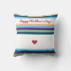 This pillow is also decorated with several elegant yet cheerful bands of colour (purple, ocean blue, sky blue, light orange, and pale green).