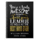 Celebrate an amazing boss with this black notebook featuring white and gold text: