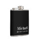 An elegant black flask for your boyfriend featuring his monogram name in classic white serif typography and "Best Boyfriend Ever" in simple modern typography.