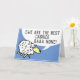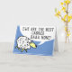 Fun illustration of a sheep on a card with the message on the front reading "Ewe are the best Cashier baaa none!" A pun on the bleating of a sheep. A great card idea for praising a professional. Personalise inside with your own message.