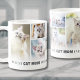 Personalised Best Cat Mum Ever 8 Photo Collage Coffee Mug. Celebrate the love and joy of being a cat mum with this custom mug, designed to showcase her favourite feline memories. Featuring a collage of eight photos—perfect for adorable shots of her cat(s) or moments of her with her furry friends—this mug is a daily reminder of her special bond with her pets. “Best Cat Mum Ever” is displayed on each side over a soft white ombre background in elegant grey text, with small heart accents for an extra sentimental touch. For added personalisation, include her cat’s name(s) with a small grey heart next to each one, creating a keepsake that’s uniquely hers. This heartfelt mug is ideal for Mother’s Day, birthdays, Christmas, or any occasion, blending a modern design with her treasured kitty memories for the ultimate cat lover’s gift.