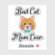 An illustration of a cute cartoon ginger cat with typography of best cat mum ever for mother's day. This simple animal design is gift idea for pet lovers, and kitten lovers.