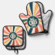 Best Chef Ever Colourful Retro Pattern Cooking Oven Mitt & Pot Holder Set