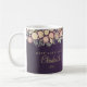Chef personalised vintage rustic country chic kitchen coffee mug featuring delicate blush pink, peachy cream, and sage green floral botanical wildflowers borders on a dark purple plum chalkboard background. +++++++++++++ It can be a beautiful keepsake personalised gift for a cooking gourmet lover, for an anniversary, birthday, Christmas, a bridal shower, or a wedding gift.