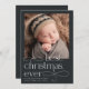 Share the news of your holiday season baby with these elegant and festive birth announcement cards featuring a square photo with "best Christmas ever" overlaid in white lettering. Personalise with your little one's name and birth stats, and add an additional photo to the back.