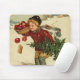 This is a vintage postcard of a boy gathering Christmas Decorations.