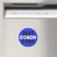 A fun and unique fridge magnet for soccer coaches, with BEST COACH Ever printed in bold black and white text and a soccer ball graphic in place of the O. You can leave the background color blue, or click the [Customize] button and use the color picker tool to select any color you want. Makes a fun gift and office decoration for soccer coaches at all levels of competition, from youth soccer through varsity high school and college soccer teams!
