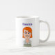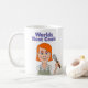 Illustration of a woman holding a whisk with custom text above. On the other side a custom name is above her head.