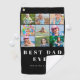 Best Dad 9 photo collage golf towel. Replace the photos with your own and change the text. Easy to do from the product page. White typography on black background.
