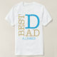 Don't wait for Father's Day to celebrate your dad. All year long, there are multiple occasions to express your love to him. So, here is a one-of-a-kind "Best Dad" design in blue and gold glitter colours for a white men's t-shirt. We used a very trendy font for this text, placed "BEST" vertically, and used a big blue "D" for dad. You will find a customisable name at the bottom written in a modern dotted blue font. Please, replace the default name with the one you wish, or feel free to delete it.