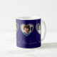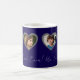 Design your own photo mug with this cute navy blue photo template with space to add 4 custom photos. Upload your favourite pictures and customise the name with your personalisation. A great gift for Dad when you add your own photos of the kids or pets! Features a dark bluecover with glitter heart backgrounds on the heart photo templates.