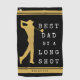Personalised golf towel for the golfer Dad with the saying BEST DAD BY A LONG SHOT. Great gift for a dad's birthday or Father's Day. Editable black and gold colour theme. CHANGES: You can change black background or stripe colours or the text font style, size, colour or placement or by clicking on CUSTOMIZE FURTHER under the PERSONALIZE section. Contact the designer via Zazzle Chat or makeitaboutyoustore@gmail.com if you'd like this design modified or on another product.