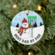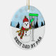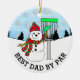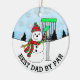Best Dad by Par cute Disc Golf pun Christmas Ceramic Ornament. Snowman throwing disc into disc pen.