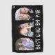 Modern Father's Day Photo Golf Towel. Design features cut out text ''DAD'' , 3 photos and best dad by par typography script.