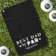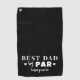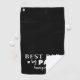 This personalised golf towel is a thoughtful way to honour the "Best Dad By Par." Set against a solid black background, the design features a bold mix of typography with script fonts, with two small hearts on each side of the phrase "by par" for a sweet and loving touch. The name appears below the text for a personal finish. Simple and meaningful, this custom towel makes a great gift for Father’s Day, birthdays, Christmas, or any occasion.
