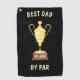 The golf towel exceeded my expectations! My husband actually approved of it! He liked the picture quality, thickness and overall usefulness of the golf towel I ordered to commemorate his lowest ever golf score. He liked it so well that I ordered 8 more towels with photos of his home golf course. Each one of the eight has the name of one of his golf group members. I will give them as party favors at my husband's 70th birthday party later this year. The different names were easy to add because the Zazzle template is so very easy to use. The colors were bright and authentic in all 9 of the towels that I made. The one of the 9 that I ordered has come out of the wash and line dry looking great.