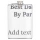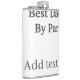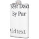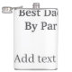The flask itself is fine. It’s a cheap flask, obviously bought in bulk, however am prepared to overlook that. Given that it is a personalized item, I would have liked to have seen gift boxing instead of the generic packaging. Terrible printing, and/or quality. It’s a cheap, tacky vinyl. It is not cut straight and is also applied in a way that it is overhanging the bottom, causing the glue to catch on items and it will eventually roll and tear, damaging the wrap.