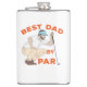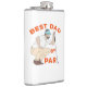 The flask itself is fine. It’s a cheap flask, obviously bought in bulk, however am prepared to overlook that. Given that it is a personalized item, I would have liked to have seen gift boxing instead of the generic packaging. Terrible printing, and/or quality. It’s a cheap, tacky vinyl. It is not cut straight and is also applied in a way that it is overhanging the bottom, causing the glue to catch on items and it will eventually roll and tear, damaging the wrap.