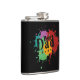 The flask itself is fine. It’s a cheap flask, obviously bought in bulk, however am prepared to overlook that. Given that it is a personalized item, I would have liked to have seen gift boxing instead of the generic packaging. Terrible printing, and/or quality. It’s a cheap, tacky vinyl. It is not cut straight and is also applied in a way that it is overhanging the bottom, causing the glue to catch on items and it will eventually roll and tear, damaging the wrap.