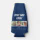 This heartfelt Father's Day can cooler features three photo frames for pictures of children or dad. The white text "Best Dad Ever" appears above the pictures all on a dark blue background. Custom text allows you to personalise with names.