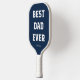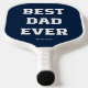 This modern navy blue and white pickleball paddle for Father's Day says "Best Dad Ever" in bold, masculine white typography on a dark blue background.