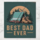 This rugged 'Best Dad Ever' design features a camping scene with a tent, hiking boots, and fishing rod, set against a mountain sunset. Ideal for dads who love the outdoors, camping, and fishing, this artwork makes a thoughtful gift for Father's Day, birthdays, or any special occasion. Celebrate dad's adventurous spirit with this unique and rustic design!