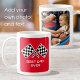 A custom photo coffee mug for racing fans and lovers of speed! This editable template features "Best Dad Ever" and winning chequered flags — easily personalise it for Mum, Sister, Brother, Aunt, Uncle, Grandma, or Grandpa! A perfect gift for birthdays, holidays, Father's Day, Mother's Day, or sports vehicle enthusiasts! Printed colours: red, black and white.